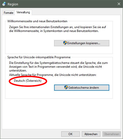 Auch die Windows-Anzeigesprache muss auf Deutsch gestellt werden.